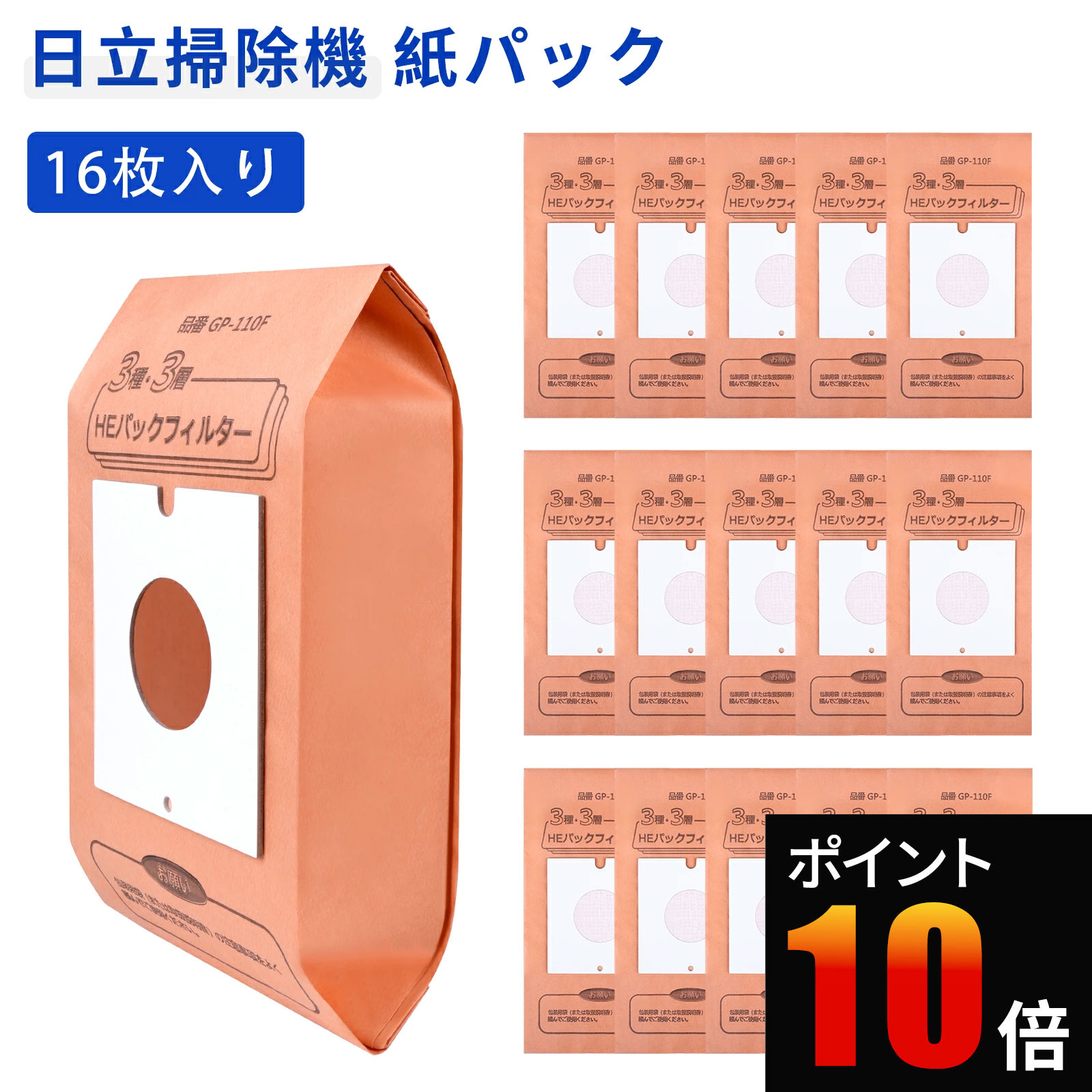 - 【100円OFFクーポン】日立 用 紙パック GP-S120FS 掃除機PKV-型用 こぼさんパック PKV-BK3LV 高抗菌3層パックフィ...
