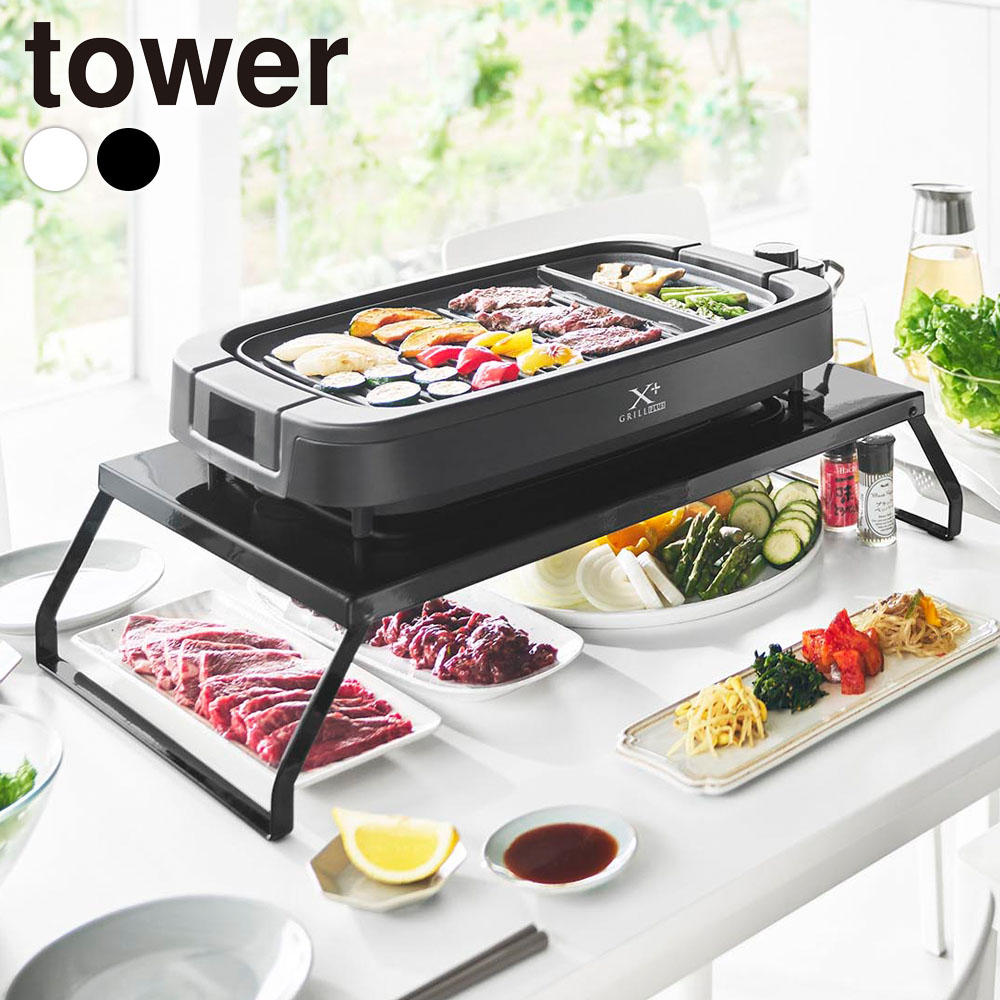 - 山崎実業 tower タワー 下が使える電気プレートラック ホワイト/ブラック 10403 10404 | ホットプレート 収納 ラ...