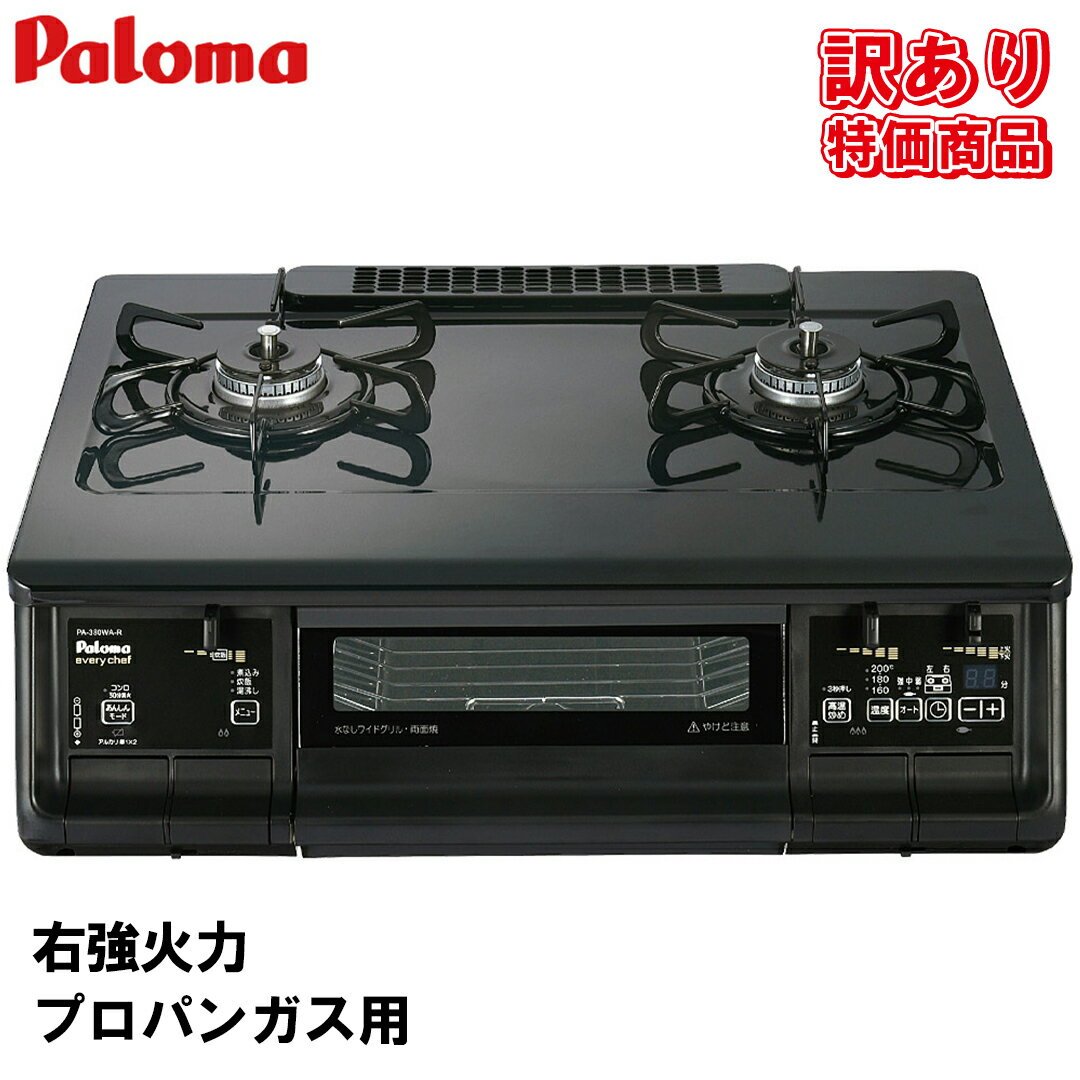 - ガスコンロ パロマ エブリシェフ プロパンガス 右強火 PA-380WA 2口 ガステーブル 両面焼きグリル 置き型コンロ ガ...