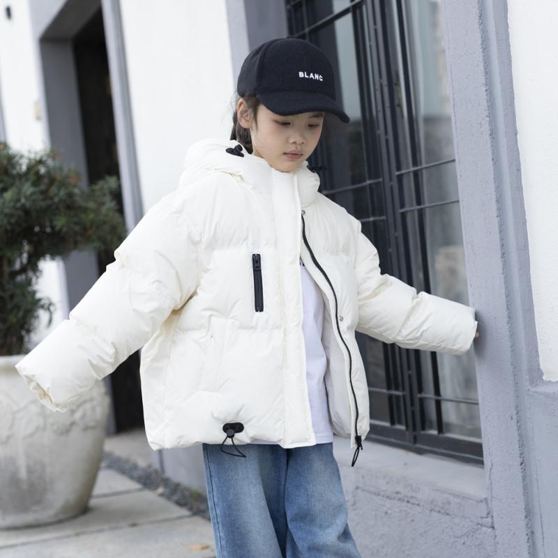 - 子供服 ダウンジャケット ガールズ ボーイズ フード付き 白ダックダウン アウター ショート丈 秋冬 無地 110cm 120...