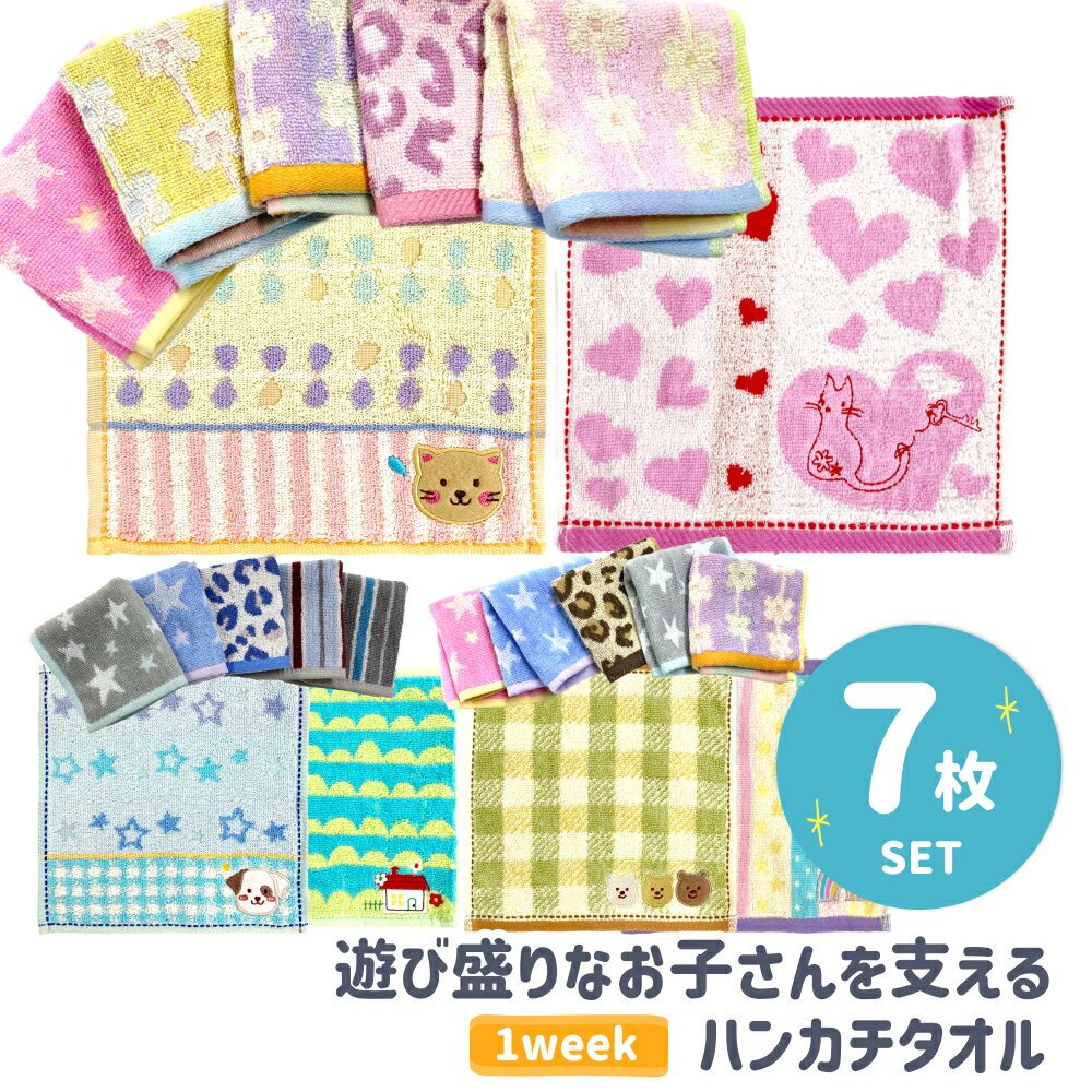 - 【ワンポイント柄を2枚選べる】 ハンカチタオル 7枚 セット ミニハンカチ 子供 子ども こども 小学校 準備 保育園 ...