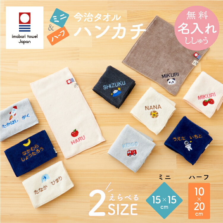 - ミニ ハンカチ ハーフハンカチ 子供 今治タオル 15cm 名入れ 無料 日本製 刺繍 男の子 女の子 キッズ ベビー 保育...