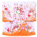 - 【レンタル】お宮参り 女の子白色 小花 産着 ピンク色 花車 桜 初着 宮参り 赤ちゃん ベビー送料無料 レンタル着...