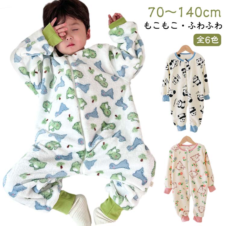 - 袖付き スリーパー 冬用 厚手 キッズ ベビー 着る毛布 前開き リブ袖 長袖 パジャマ フリース ふわふわ もこもこ ...