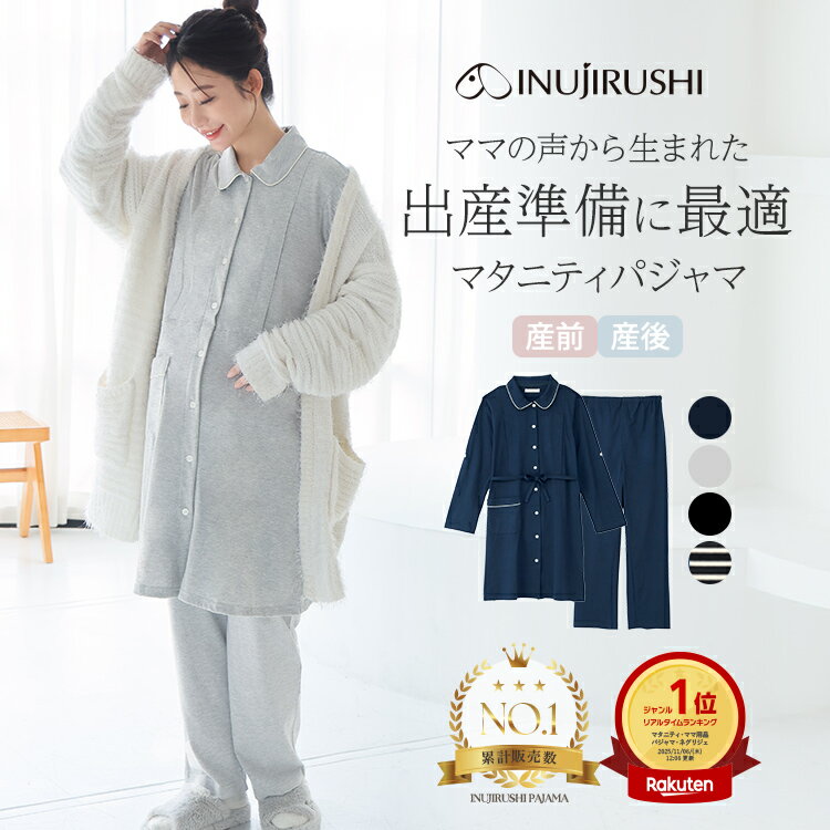 - 犬印本舗 マタニティパジャマ 長袖 前開き 全開 襟付き 授乳 上下 セット マタニティ パジャマ M L LL 大きいサイ...