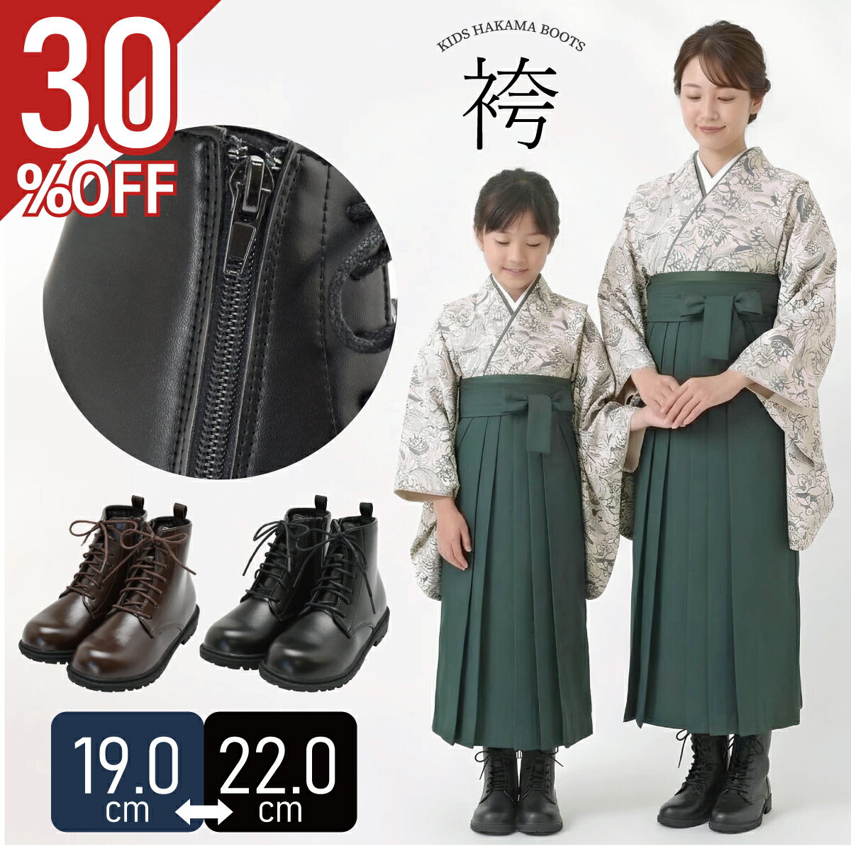 - 【30%オフ】キッズ 大人も履ける ショートブーツ 袴ブーツ シンプル レースアップ 編み上げ サイドジップ ファス...