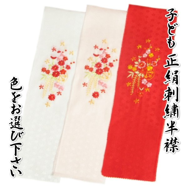 - 七五三 お子様用 半衿 女の子用 正絹生地 桜刺繍 半襟 全3色 ch-36