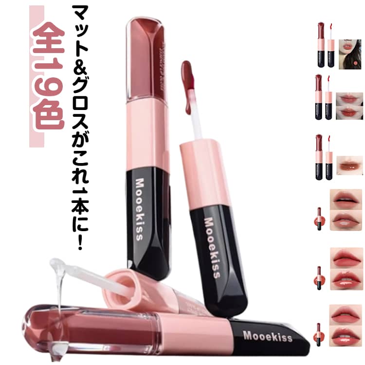 - TikTok推奨 ダブルエンドリップグロス 2in1 エッセンスリップティント 双頭リップ 口紅 マットリップ リップグロス...