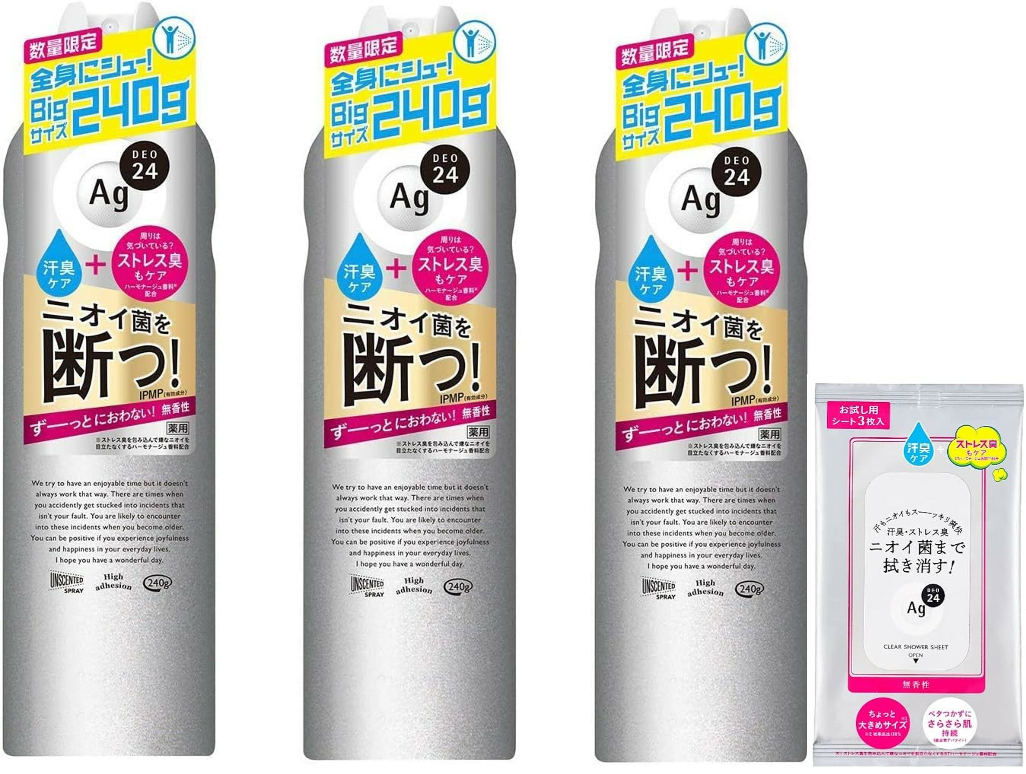 - エージーデオ24メン メンズデオドラントスプレー プレミアム 無香性 LL(180g×3セット)【エージーデオ24(Ag deo 24)】