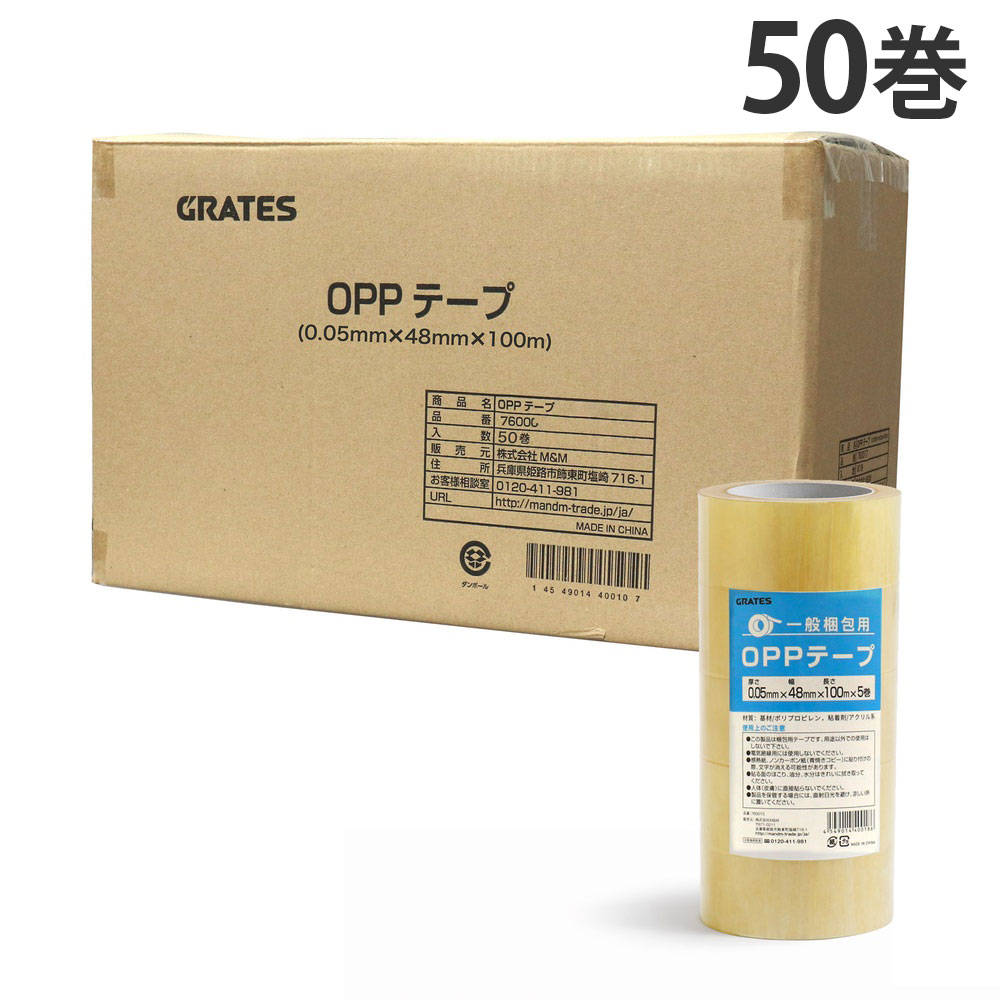 - OPPテープ 48mm×100m巻 (透明) 50巻入 5箱セット 合計250巻 梱包テープ 梱包資材 セロテープ 透明テープ
