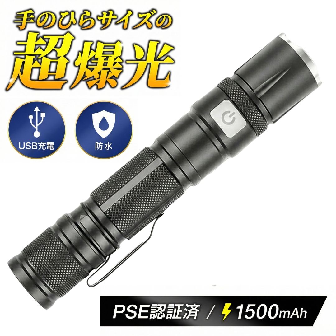 - 【レビュー特典★】強化版懐中電灯 led 多機能 長距離 高輝度 ミニ懐中電灯 ポータブル USB充電付 ズーム調節 強力 ...