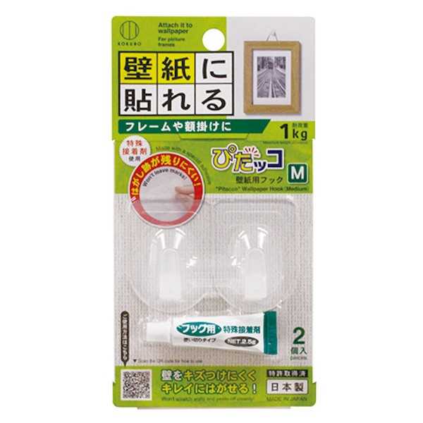 - 壁紙用フック ぴたッコ M(5.5×4cm) 2個入 特殊接着剤付 (100円ショップ 100円均一 100均一 100均)