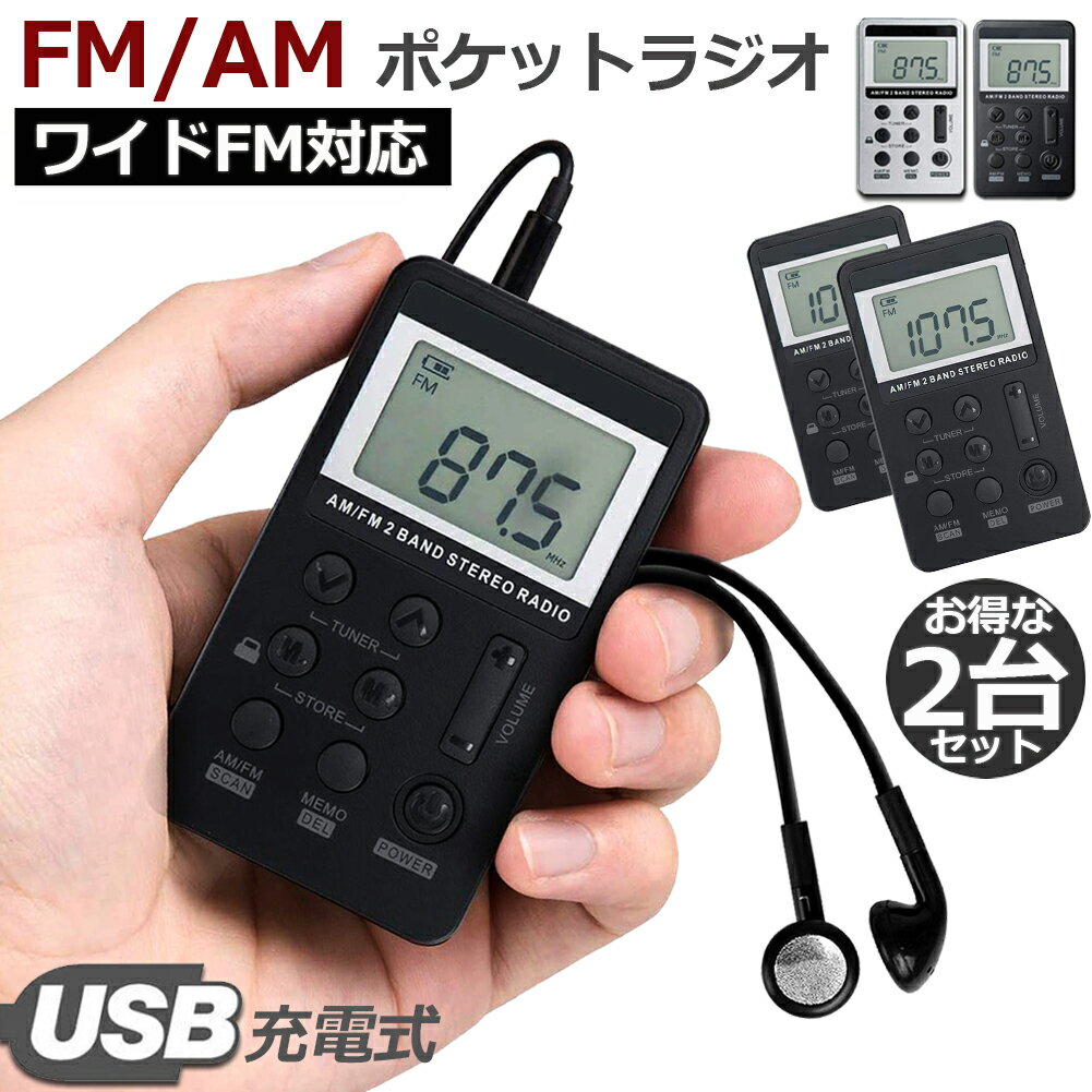 - ポケットラジオ ワイドFM FM AM 対応 ポータブルラジオ 2カラー セットあります 音楽プレイヤー MP3 スピーカー ブ...