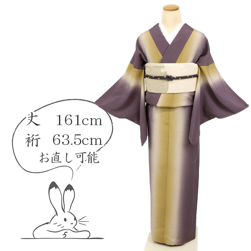 - 【中古】特選小紋 しっとり縦筋ラインぼかし カジュアル 滅紫×桑茶色 身丈161cm 裄丈63.5cm 袷正絹着物 KP12-5 msi...