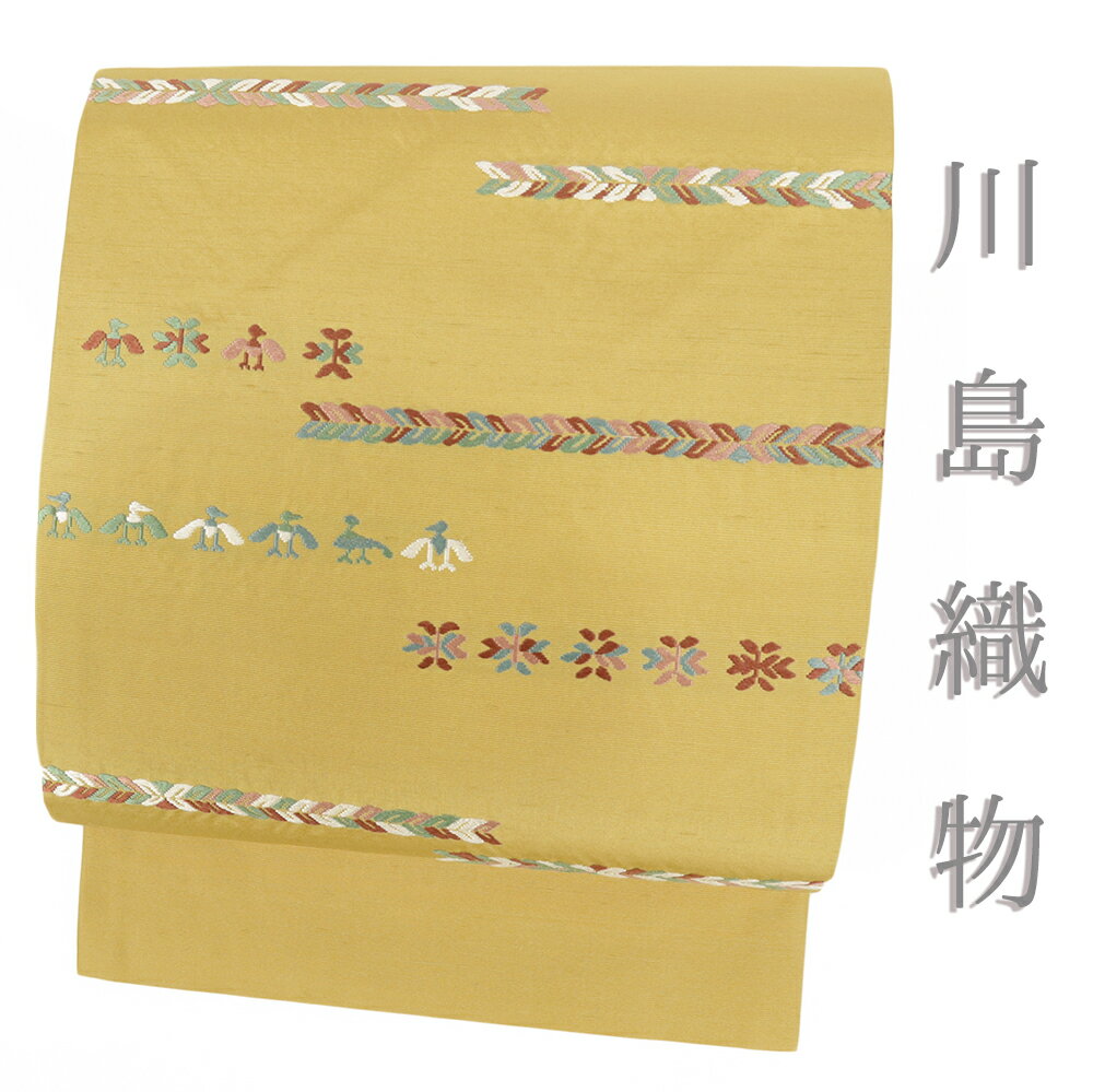 - 【 中古 】 名古屋帯 川島織物 中古 正絹 からし色 鳥 花 カジュアル 仕立て上がり 九寸 No.i6-2404