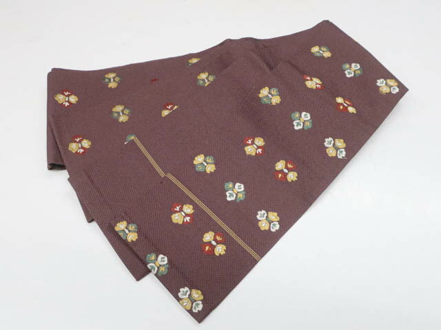 - 【中古】九寸名古屋帯 ちりめん 全通柄 正絹 美品 25b11-2126【リサイクル】 IDnet