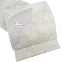 - 【 中古 】 夏物 袋帯 リサイクル 正絹 フォーマル 仕立て上がり 六通 花の図 地紙 波 箔糸 灰白色 多色 金銀 A116...