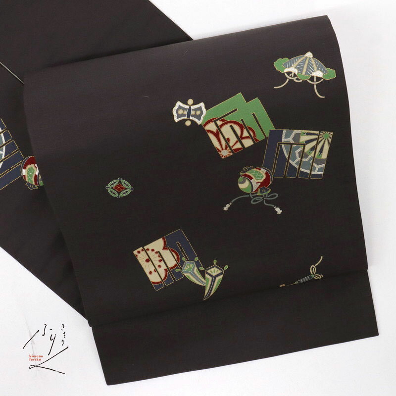- 【中古】特選 名古屋帯 源氏香に宝尽くし 紫黒 カジュアル 普段着に♪ 長さ358cm 帯巾31cm 正絹着物 NP5-16 街着 お...