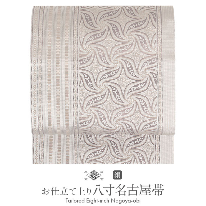- 【クーポンご利用で最大10%OFF!】名古屋帯 正絹 博多 博多織 帯 八寸 薄紫 風車 縞 協和織工場 正絹 お仕立て上が...