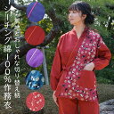- 女性用 作務衣 おしゃれな猫柄や花柄の切り替え柄 無地 シーチング レディース さむえ 綿100% 平織り生地 パイピ...