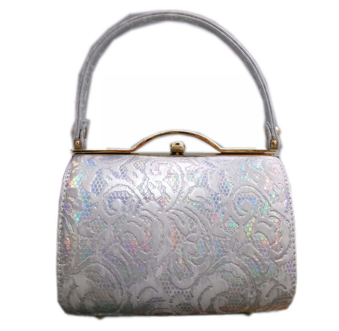 - バッグ 手提げ 合皮 オーロラウロコシルバー唐草 振袖 成人式 卒業式 袴 着物 洋装 単品 振袖用 きもの はかま ハ...