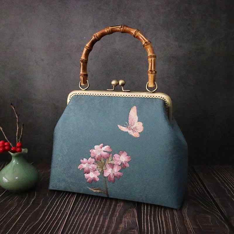 - パーティーバッグ 刺繍 竹ハンドル チャイナ風 ハンドバッグ レトロ レディース エレガント がま口使用 エレガント...