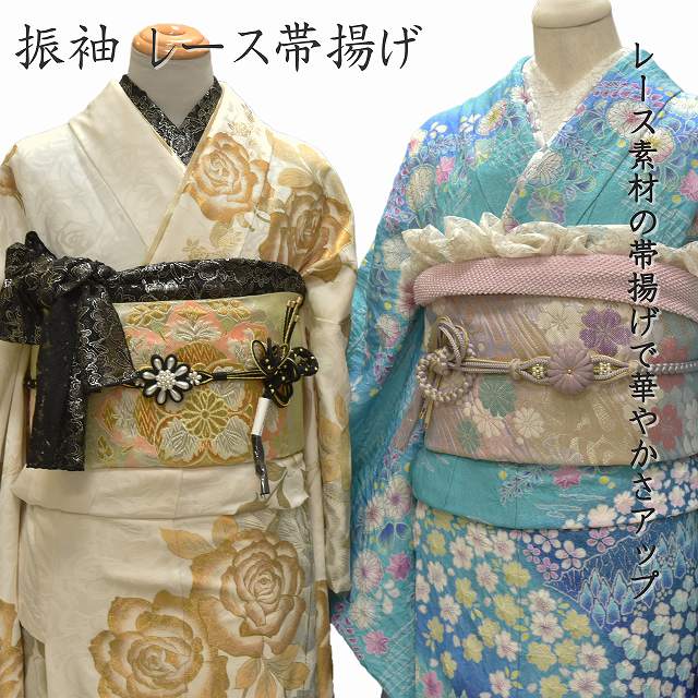 - レース 帯揚げ 振袖 成人式 白 黒 刺繍 ラメ おびあげ 振袖用帯揚げ 振袖帯揚げ ホワイト ブラック 和装小物 おし...