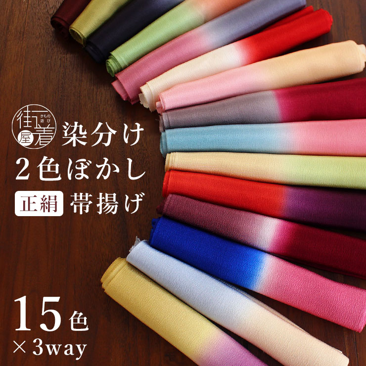 - \限定色入荷/ [大好評!] 日本製 正絹 ちりめん帯揚げ 染め分け 15色 フォーマル カジュアル おびあげ 帯あげ 絹...