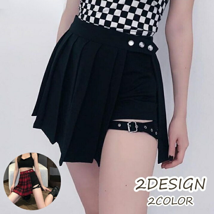 - 送料無料 キュロットスカート レディース ボトムス キュロット スカート風 ミニ丈 パンク チェック柄 カジュアル ...