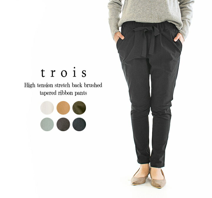 - trois トロア ハイテンションストレッチ裏起毛テーパードリボンパンツ T256-87025【T216 T196-87025】【特別価格】