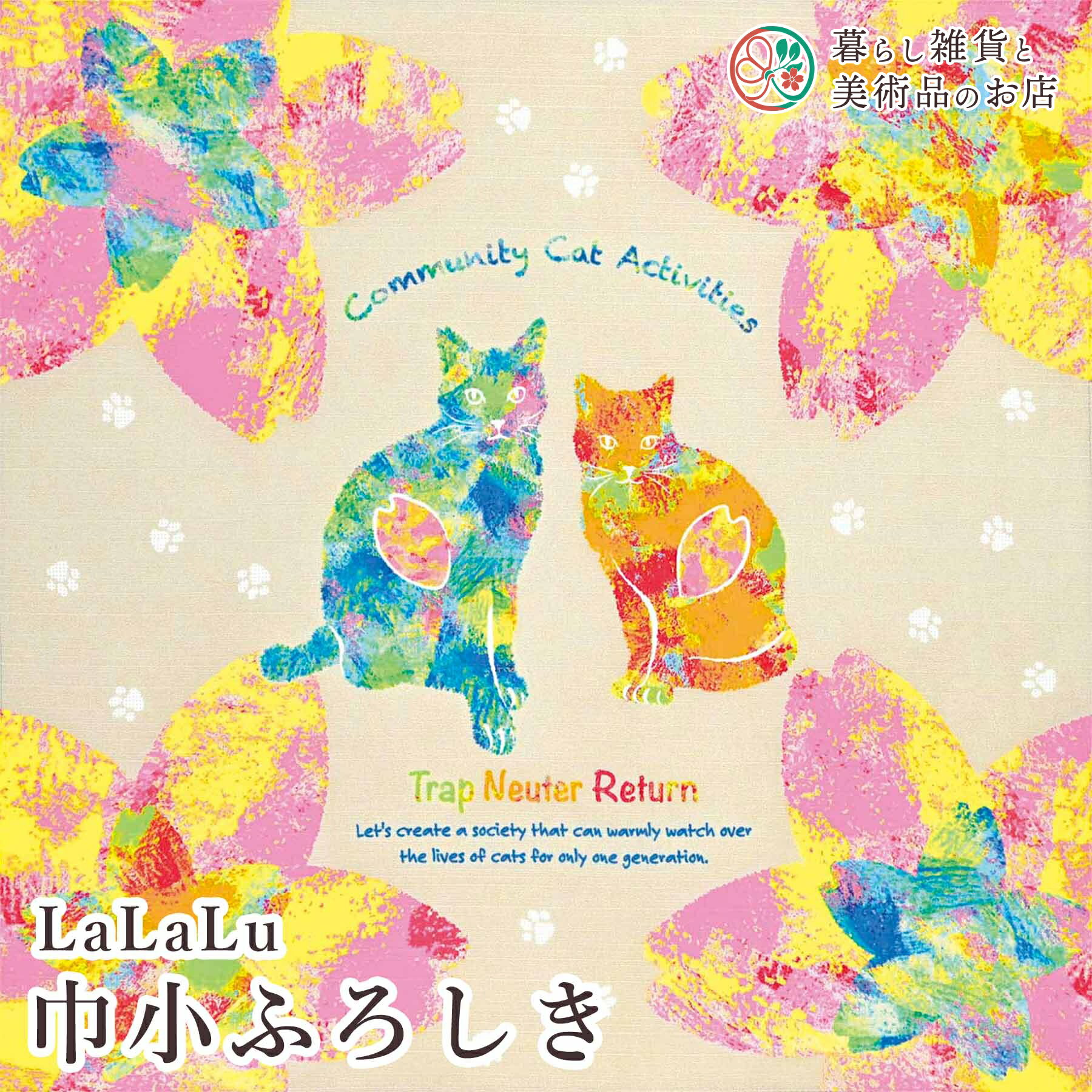 - 風呂敷 LaLaLu縮小 ふろしき さくらねこ 綿(100%)シャンタン 中巾 約50cm おしゃれ ふろしき テーブルクロス カバ...