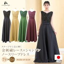 - 【安心の日本製】演奏会用ドレス ピアノ 発表会 大人 金刺繍レース×シャンタン ロングドレス ステージ衣装 カラー...