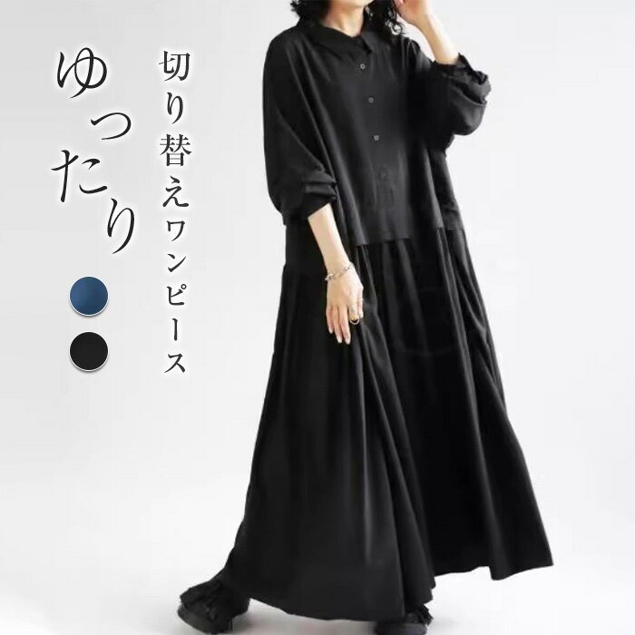 - 【期間限定クーポンで3080円】 ワンピース シャツワンピース レディース 長袖 秋 春 ロングワンピース 切り替え A...