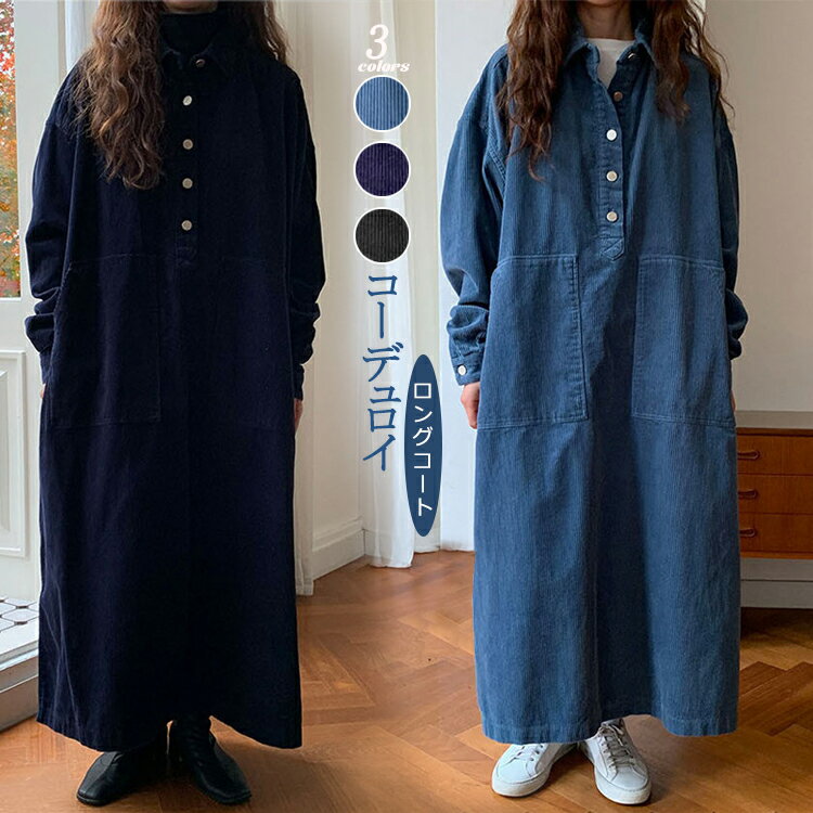 - シャツワンピース 長袖 春 秋 ワンピース レディース きれいめ ロングワンピース コーデュロイ ワンピース ロング ...