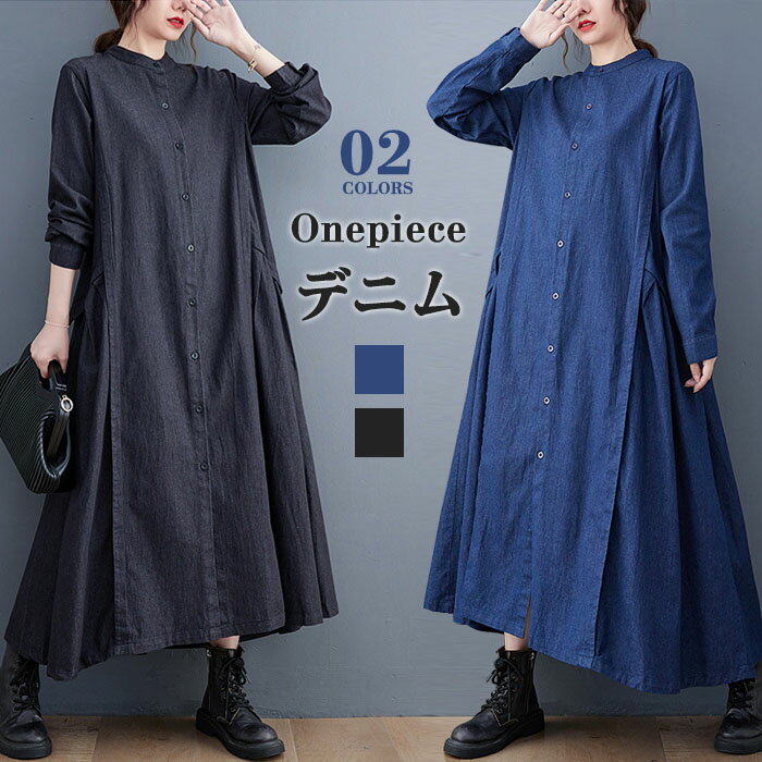 - マキシワンピース 秋 レディース 長袖 ワンピース デニム マキシ丈 きれいめ 楽ちん 体型カバー ロング ワンピース...