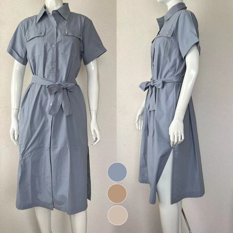 - 送料無料 女性 ワンピース レディース 夏 半袖 無地 シャツ ワンピ ワイシャツ ロング ワンピース ファッション