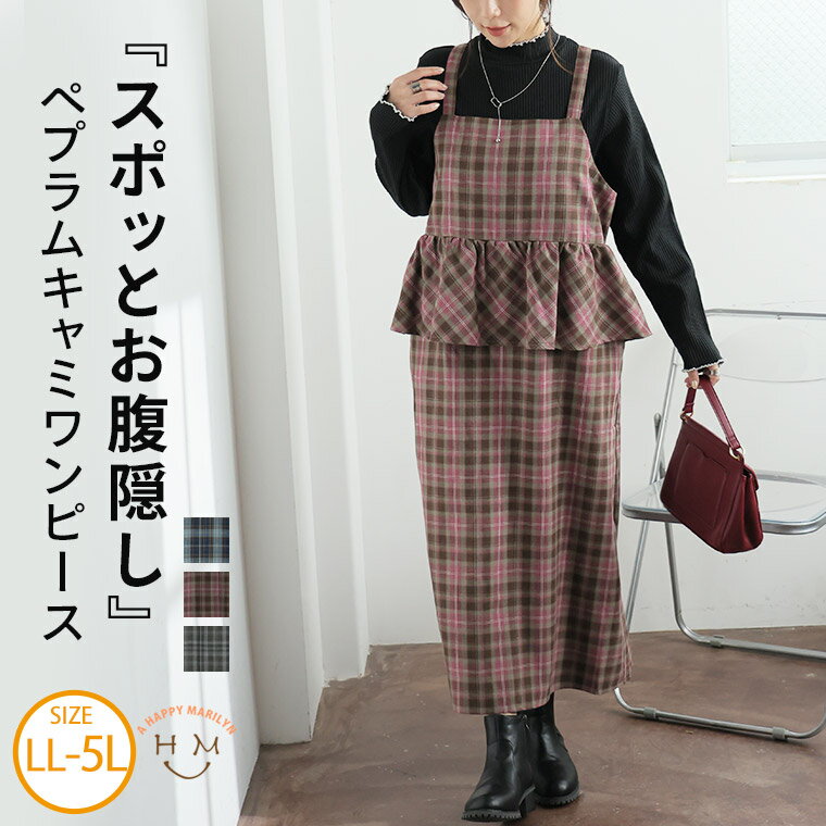 - 【限定!全品P5倍11/16 13:59まで】 大きいサイズ レディース ワンピース | ぽっこりお腹カバー ペプラム ジャンス...
