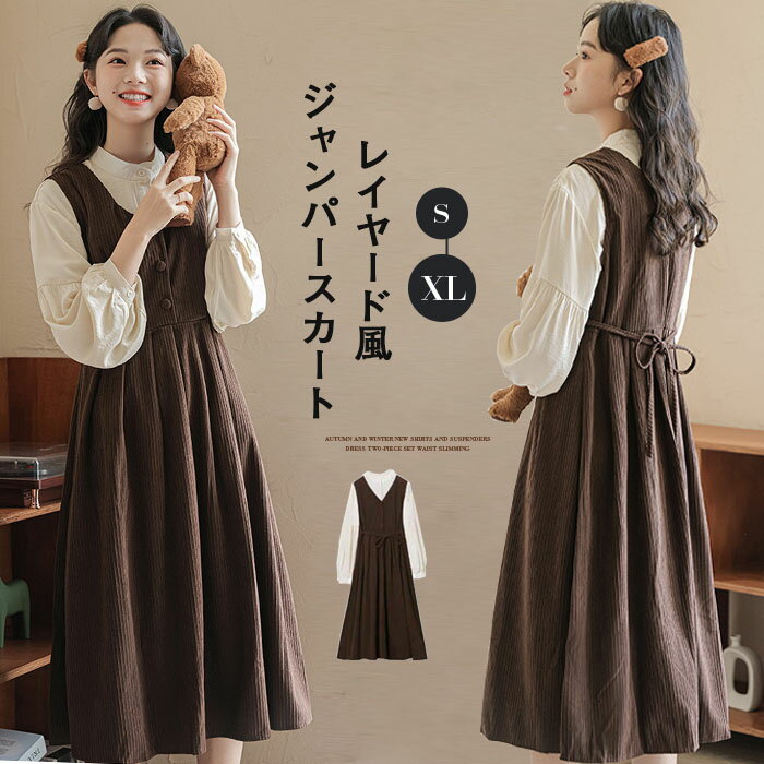 - ジャンパースカート ワンピース レディース 秋冬 大きめ 大きいサイズ ロングワンピース 秋 冬 vネック 大人 きれ...