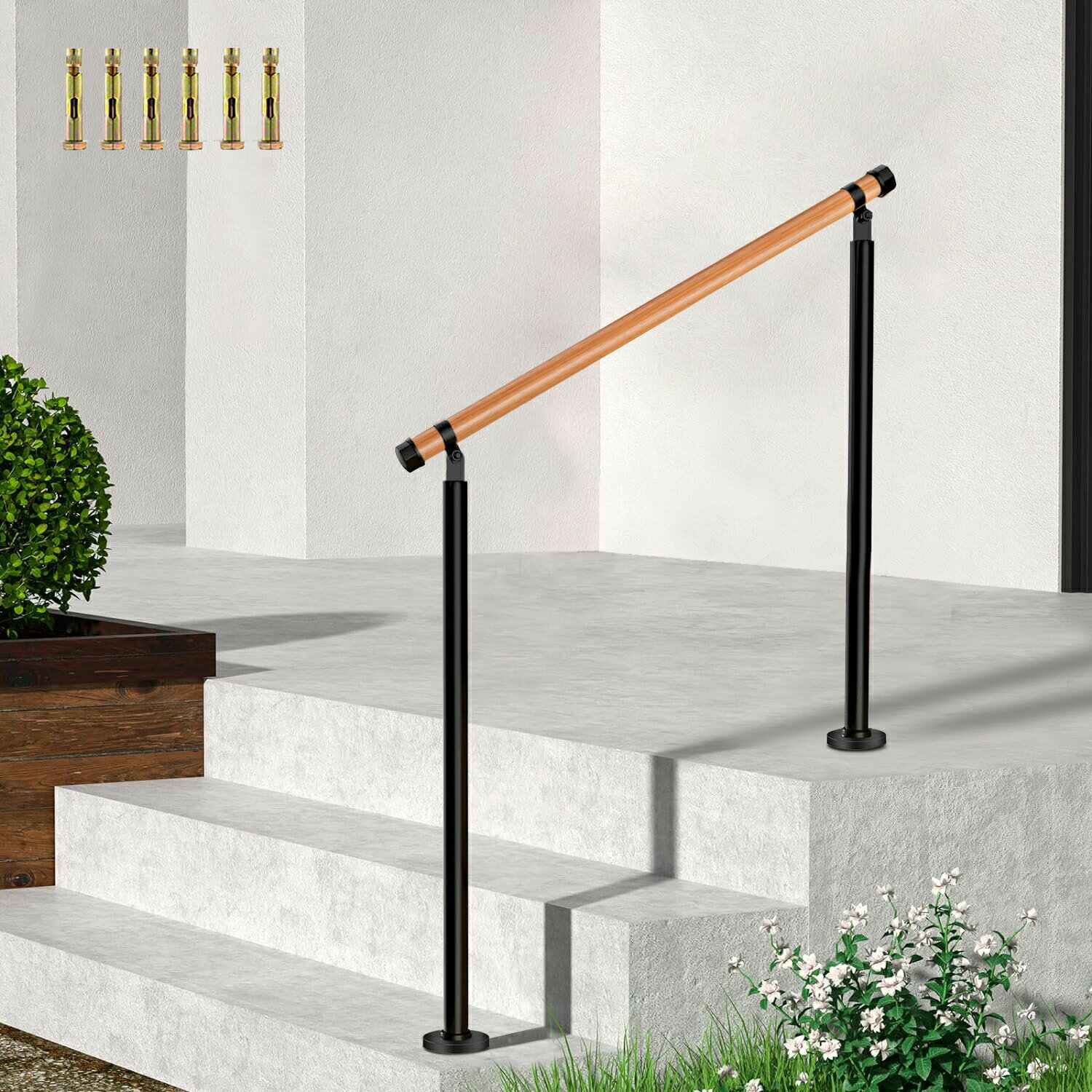 - 【2024年最新】屋外 階段 木目調 手すり玄関手すり 手摺りDIY 角度調整可能 屋内屋外用 簡単な取り付け 荷重150kg ...