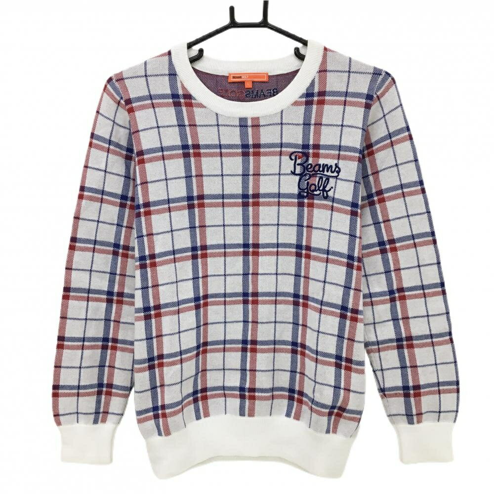 - 【美品】ビームスゴルフ セーター 白×ブルー チェック ロゴ刺しゅう コットン100% レディース L ゴルフウェア BEA...