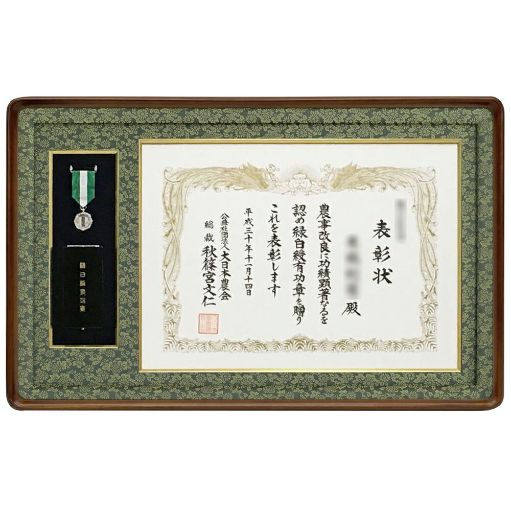 - 大日本農会 有功章専用額 妙高 どんす深緑 緑白綬有功章・紫白綬有功章・紅白綬有功章(章のケースサイズ・66×135ミリ)