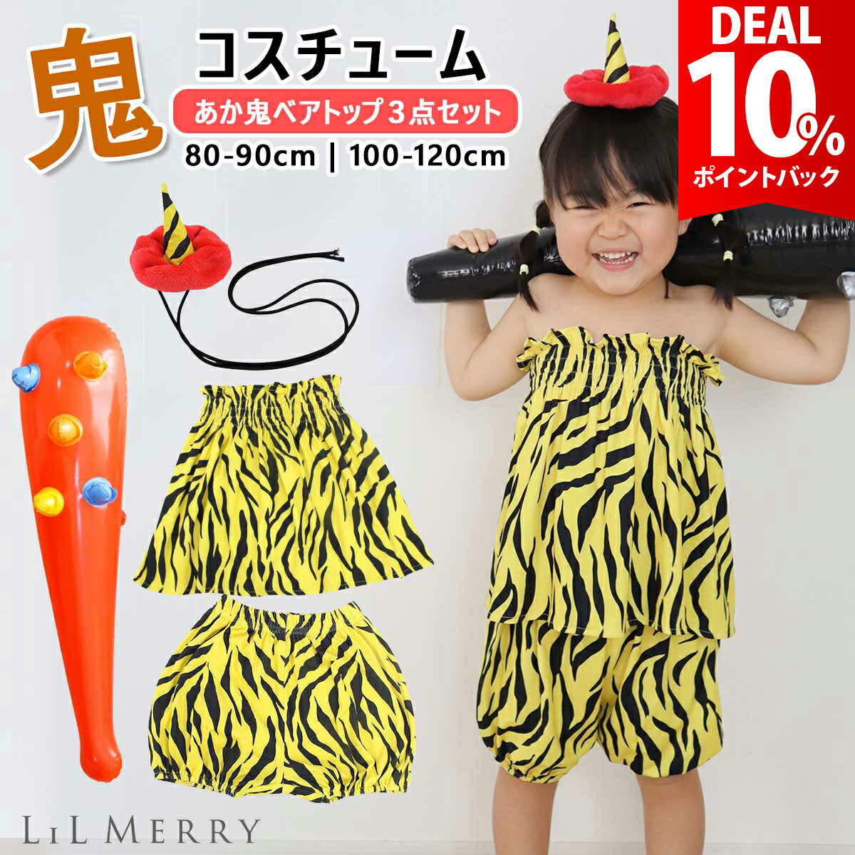 - 【DEAL★10%ポイントバック】【鬼の角&こん棒セット】節分 鬼 衣装 パンツ ベアトップ 子供 キッズ 保育園 赤 鬼 ...