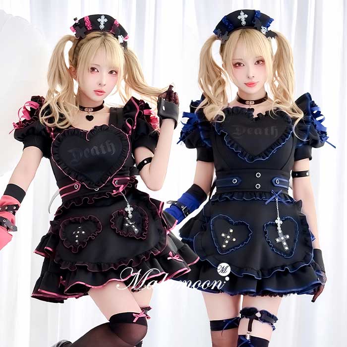 - [正規品] ハロウィン コスプレ 仮装 大人 スイーツ メイド服 メイド ウェイトレス セット パステル 衣装 女性 可愛...