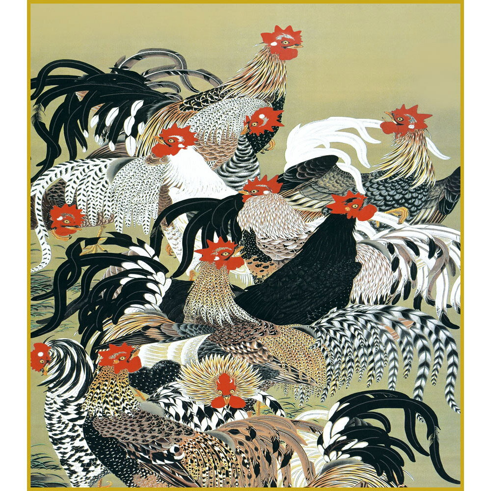 - 【色紙】 伊藤若冲「群鶏図」 複製画 色紙 特殊工芸画 にわとり 動物画 日本画 障壁画 名作 酉 宮内庁三の...