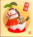 - 和紙押し絵 「 招福午 」 干支 ミニ色紙 寸松庵