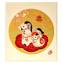 - 【アウトレット】和風飾り絵 干支色紙 (金) 午 No.34