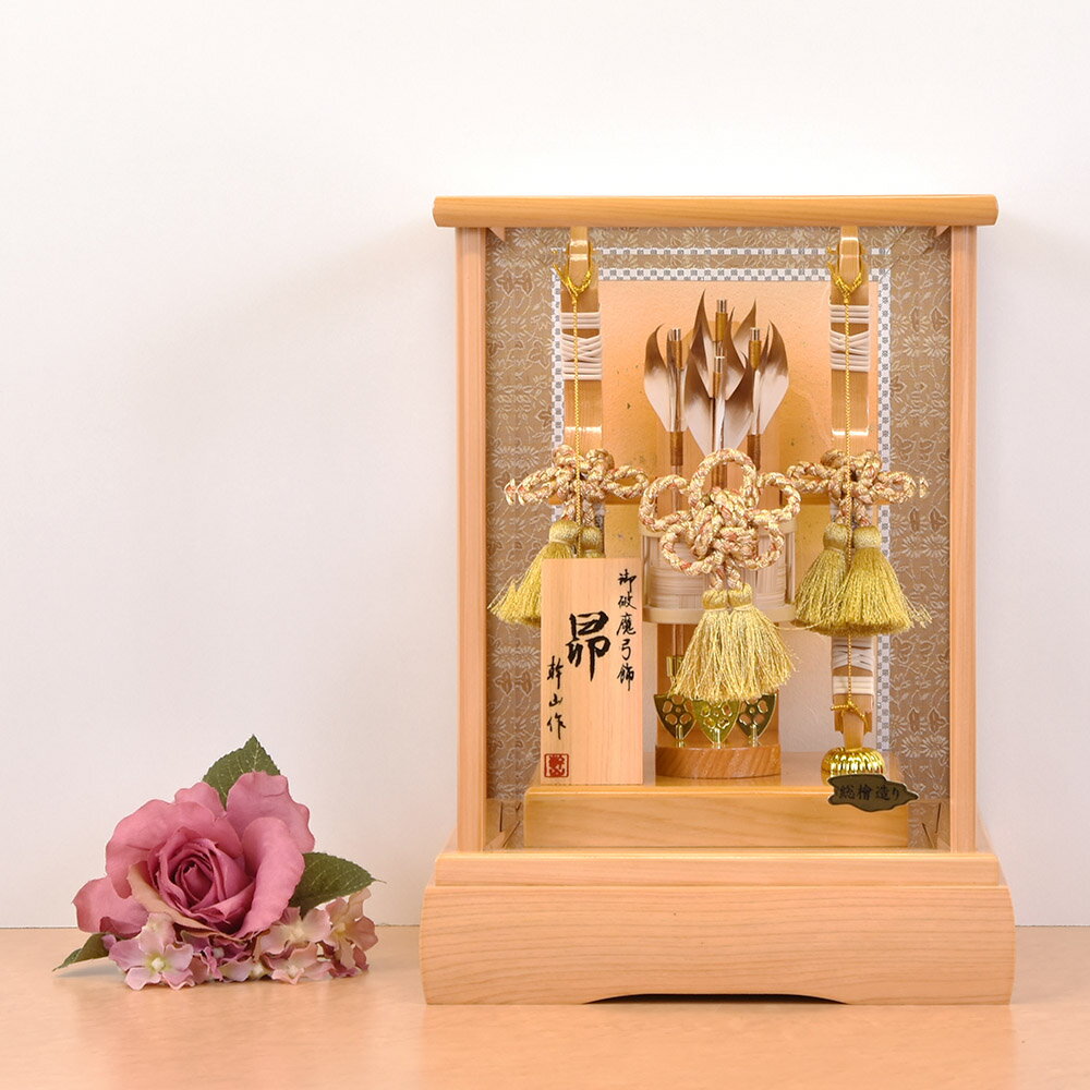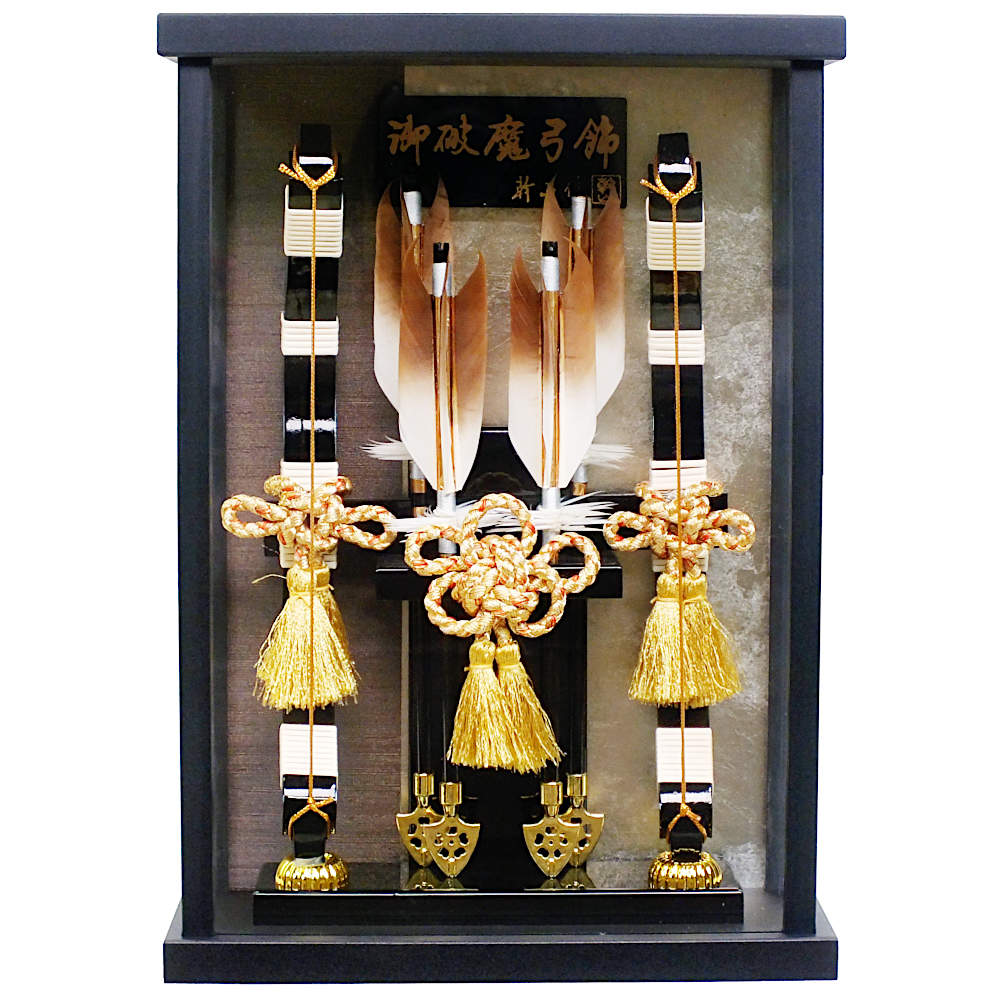 - 破魔弓 吉徳大光 コンパクト ケース飾り 8号 白木調 木目 アクリルケース飾り HMY-210-038 黒塗り 六角 アクリルケ...