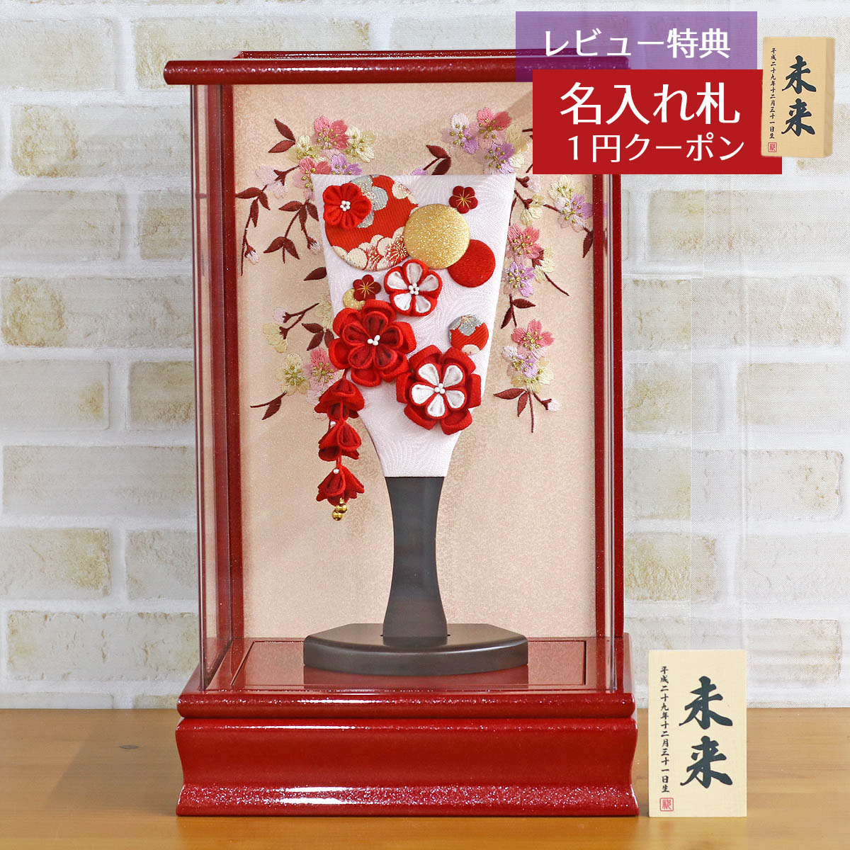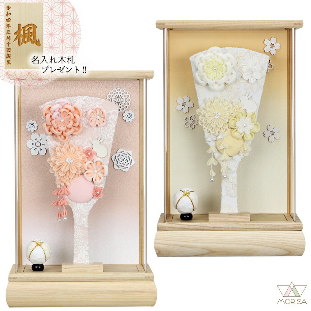 - 羽子板 初正月 円形アクリルケース 美鈴 オフホワイト柄7号 リボンカンザシ ベージュ コンパクト 宝童 かわいい 名...
