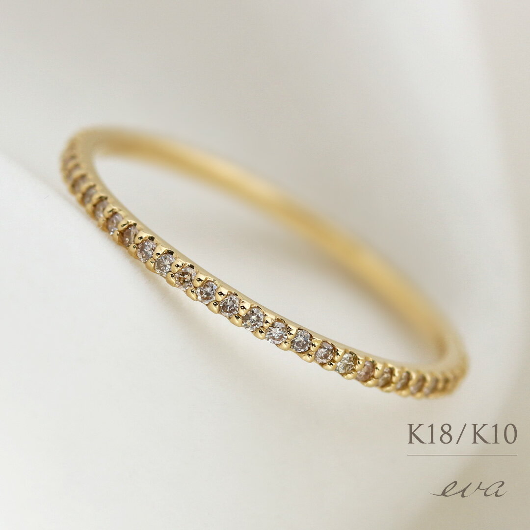 - K18 K10 フルエタニティ リング 天然 ブラウンダイヤモンド 計0.16ct〜0.21ct 1号〜16号 送料無料 高品質 ブラウン...