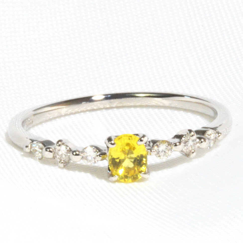 - プラチナ Pt900 イエロー サファイア ダイヤモンド リング 指輪